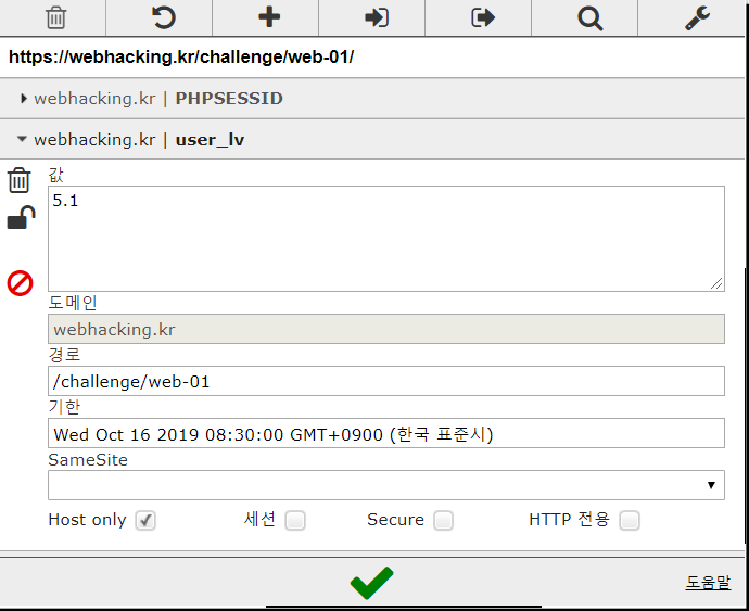 이제 COOKIE['user_lv']의 값을 변조해 주어야 하는데 우리는 아직 쿠키를 다루지 못합니다.