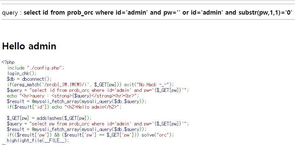 위와같은 쿼리문을 날려주어 Hello admin 이 뜨는것을 보아 admin 의 비밀번호는 8 자리이다.