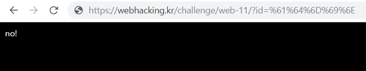 url 인코딩 표를 이용해서 admin을 바꾸면 %61%64%6D%69%6E 의 값이 됩니다.