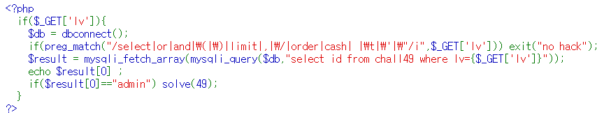lv를 GET 방식으로 입력받고 결과값(ID)을 출력해준다.